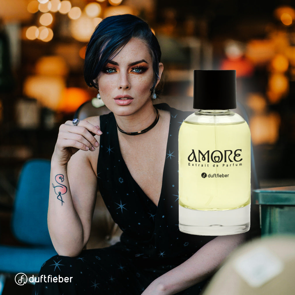 Amore steht für die Liebe in all ihren Facetten: aufregend, unberechenbar und intensiv. Genau wie dieser Duft. Er begleitet dich wie eine unsichtbare Aura, die Spuren hinterlässt, ohne laut zu sein – für die Frau, die mit Leichtigkeit und Charme Herzen erobert.