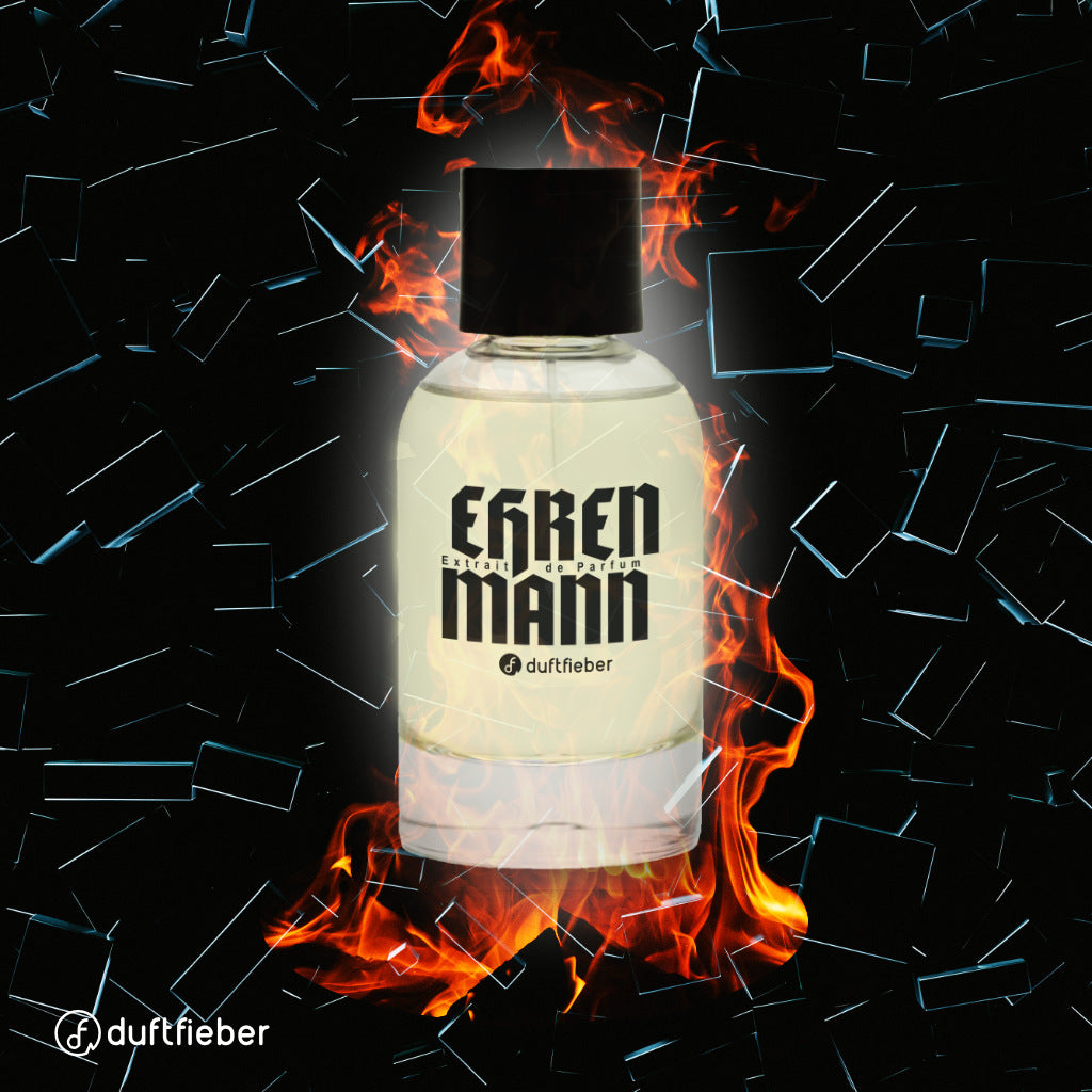 Ehrenmann – Ein Duft für den Mann, der weiß, was er will und das mit einer stillen, souveränen Stärke ausstrahlt. Hier treffen feiner Kardamom und rosa Pfeffer auf das Herz aus warmem Oud und samtigem Sandelholz. Die Frische des Zypressenöls harmoniert perfekt mit der Tiefe des Patchoulis und der Weichheit der Iris – ein Kontrast, der pure Anziehungskraft verströmt. In der Basis sorgen Amber und Labdanum für eine warme, sinnliche Note, die durch erdigen Vetiver und moschusartigen Hauch ihre Vollendung findet.